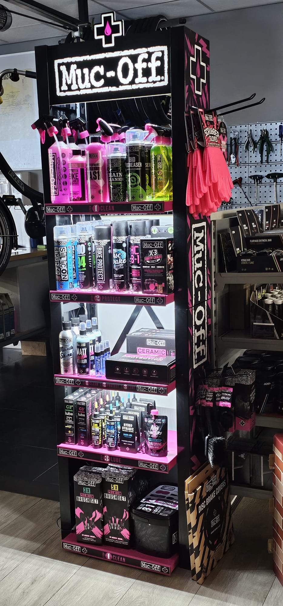 Muc-Off producten. Voor de beste zorg voor uw fiets! Zeker tijdens de wintermaanden is het belangrijk om uw fiets goed schoon te houden, zodat extra slijtage voorkomen wordt. Kom langs voor vragen en advies van onze poets-experts!
